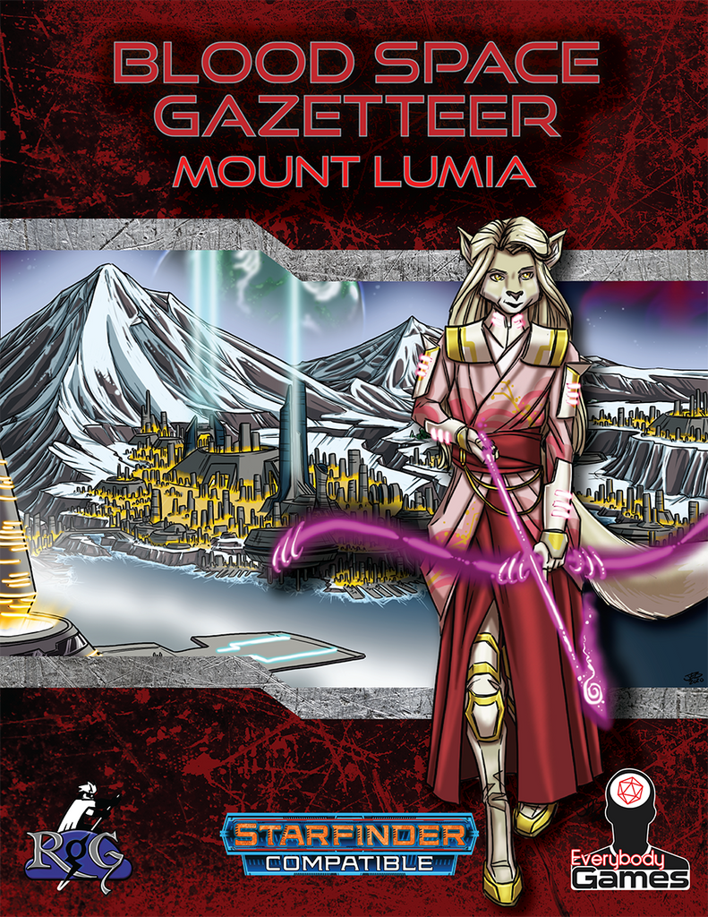From the minds of Owen K.C. Stephens, Alexander Augunas, and Matt Banch and produced by Everybody Games and Rogue Genius Games, a new star system in need of heroes for your PCs to explore! Enter the Xa-Osoro System, home of blood space first introduced in Rogue Genius Games’s Starfarer’s Companion. An empire on the brink of collapse, a civilization clawing back from the brink of annihilation, dozens of warring factions and shady mega-corps vying for control in an age marred by tragedy. This is the world that awaits you in the Blood Space Gazetteer.