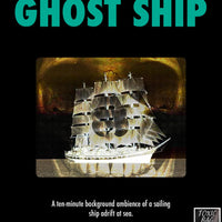 “Ghost Ship” is a background sound of a sailing ship adrift at sea – hull creaking, sails flapping, ship’s bell clanging softly as the ship lists from side to side. The effect is ten minutes long and loops seamlessly.