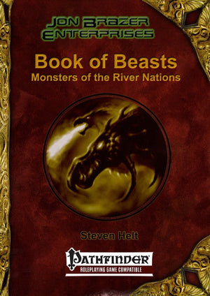 The Book of Beasts: Monsters of the River Nations is a 32 page, fully Pathfinder Compatible supplement containing twenty-four brand new monsters, several pre-stated out humanoid encounters, new diseases, templates, haunts, drugs and gambling games.