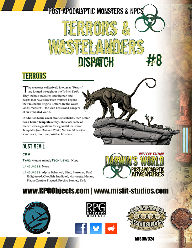 Darwin's World Nuclear Edition Terrors & Wastelanders Dispatch #8 - Savage Worlds SWADE Monsters