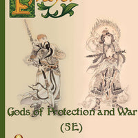 In this book you will get two deities usable in most any setting based off of deities from Eastern religion and mythology. Included with the deities are obedience and boon rules, background text to help you integrate the deities into your game, a domain for the Cleric and a new Inevitable, a divine construct, whose duty is to protect shrines, holy artifacts and temples.