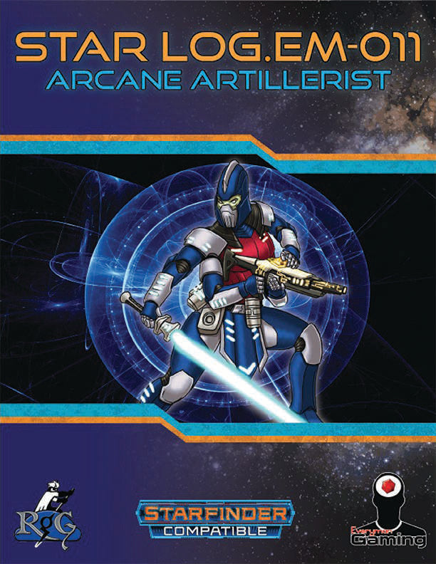 This installment of Star Log.EM includes: 1,000 words detailing another legacy prestige class-turned-Starfinder archetype. This time, the fan-favorite arcane archer prestige class gets a futuristic makeover in the arcane artillerist, allowing these characters to transform nearly any ranged weapon into a powerful arcane-ladden doom machine. Also included are three new weapon fusions that take iconic powers of the arcane archer and put them into the hands of anyone who can afford a fusion seal, especially arcane artillerists. Finally, additional information detailing how arcane artillerists fit into Rogue Genius Games’ Blood Space campaign setting rounds out the product.