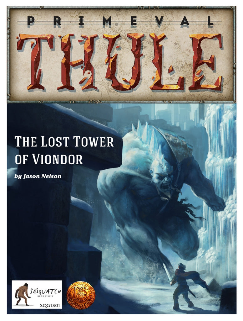 The Lost Tower of Viondor is a pulp adventure for characters of 7th-9th level, taking them from familiar shores across the wild northern seas and into the heart of the frozen north in search of magical treasures and lore that will make them rich beyond imagining. While easily portable to any campaign with icy seas and fallen ancient empires, this adventure is set in the Primeval Thule Campaign Setting from Sasquatch Game Studios! Inspired by the literary traditions of sword-and-sorcery adventure, lost worlds, and fantastic horror, the land of Primeval Thule is a savage, intense campaign setting. Primeval Thule is a multi-platform campaign setting, available for the Pathfinder Roleplaying Game and the 13th Age Roleplaying Game.
