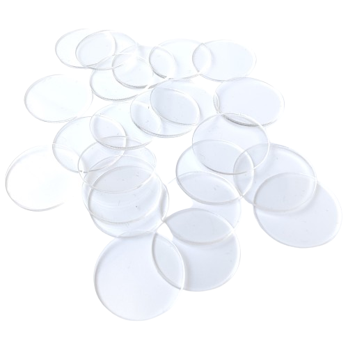 • Round 1-inch / 25.4mm miniature bases, 0.06 inch / 1.5mm thick precision laser cut acrylic. These DND miniature bases are perfectly flat and do not include any kind of a nub for holding a figure, you must use glue or a product like sticky putty.