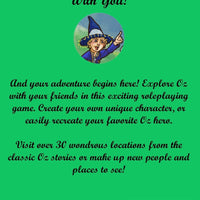 The Adventure Begins With You! For over 100 years, Dorothy's adventures in the Land of Oz have fired the imaginations of millions. Now it's time to create your own Adventures in Oz! * Easily create your own unique Oz character, or recreate your favorite Oz hero! * Simple rules and a bloodless combat system make it a great game for Oz fans of all ages! * Over 30 locations from L. Frank Baum's Oz stories as well as advice for creating your own Ozzy locales! * "The Jaded City of Oz" a fun new Oz adventure!