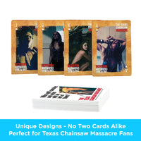 ๐ UNIQUE DESIGN ON EVERY CARD: The Texas Chainsaw Massacre deck of playing cards includes 54 cards (52 playing cards and 2 jokers). Every single playing card features its own distinct TTCM themed design and art. No two cards are alike