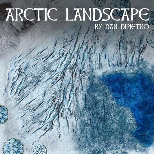 Inject your campaign with the frigid air of the north. Create modular maps with glaciers, frozen ponds, river rapids, the icy tundra, and more. Arctic Landscapes modular terrain map pack contains: