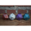 Our 35mm D20 die are cast in our custom D20 mold and made from zinc alloy metal, ensuring a more balanced roll. This large D20 features our signature nordic font and comes with a free Misty Mountain Gaming velvet dice bag.