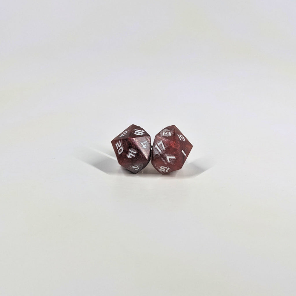 Blood Oath D20 Stud Earrings - Fiery Red Black Dice Jewelry