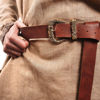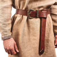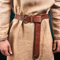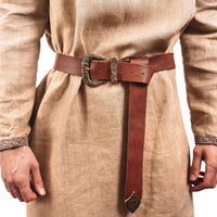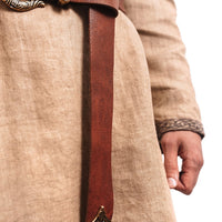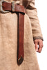 šÆļøĀ MEDIEVAL STYLE FITĀ - Each belt features a 62" (157.48 cm) long, naturally finished brown leather belt strap with a soft, yet rustic finish. Belt is 1.75" (2.54 cm) in width and weighs a total ofĀ 11Ā oz.Ā The belt is not worn in the traditional style with a modern belt loop, but instead is worn by looping the belt down through the waist and having the tip hanging down between the legs. Therefore, this is a one-size-fits-all belt.