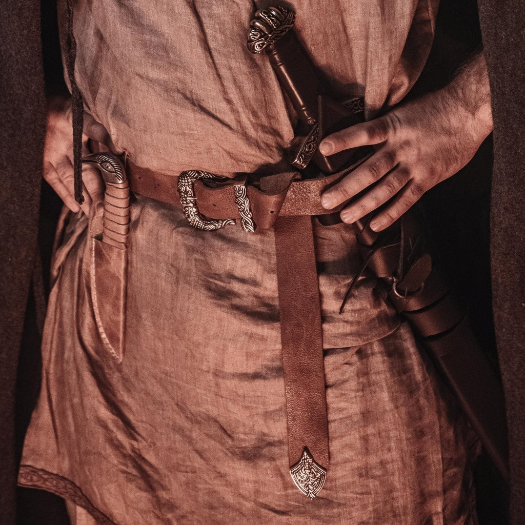 šÆļøĀ BORRE VIKING STYLEĀ - The Norse Tradesman Viking belt is modeled after the Borre style, which prevailed in Scandinavia from the late 9th through to the late 10th century. This piece features interlocking knot patternsĀ in the style of the day.