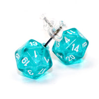 Chessex Dice: Stud Earrings - Translucent Teal Mini-Poly d20 Pair