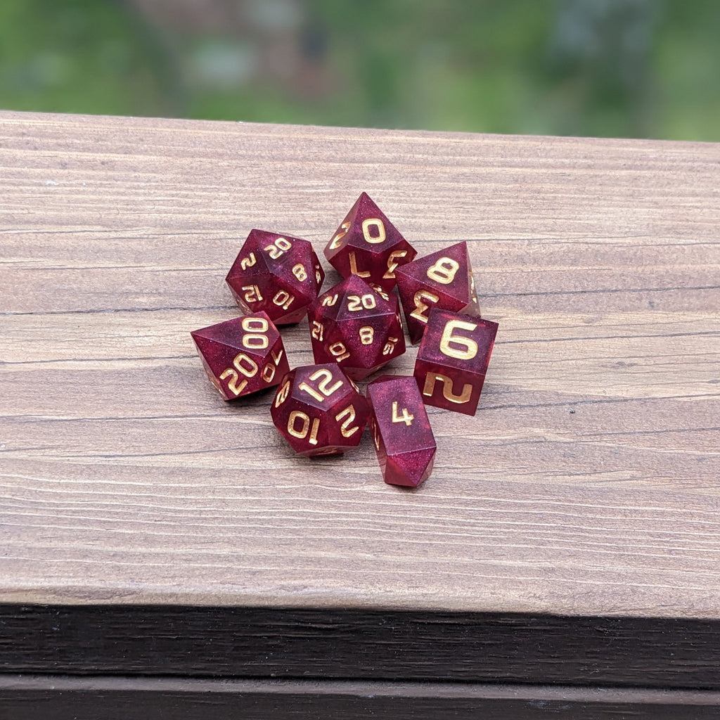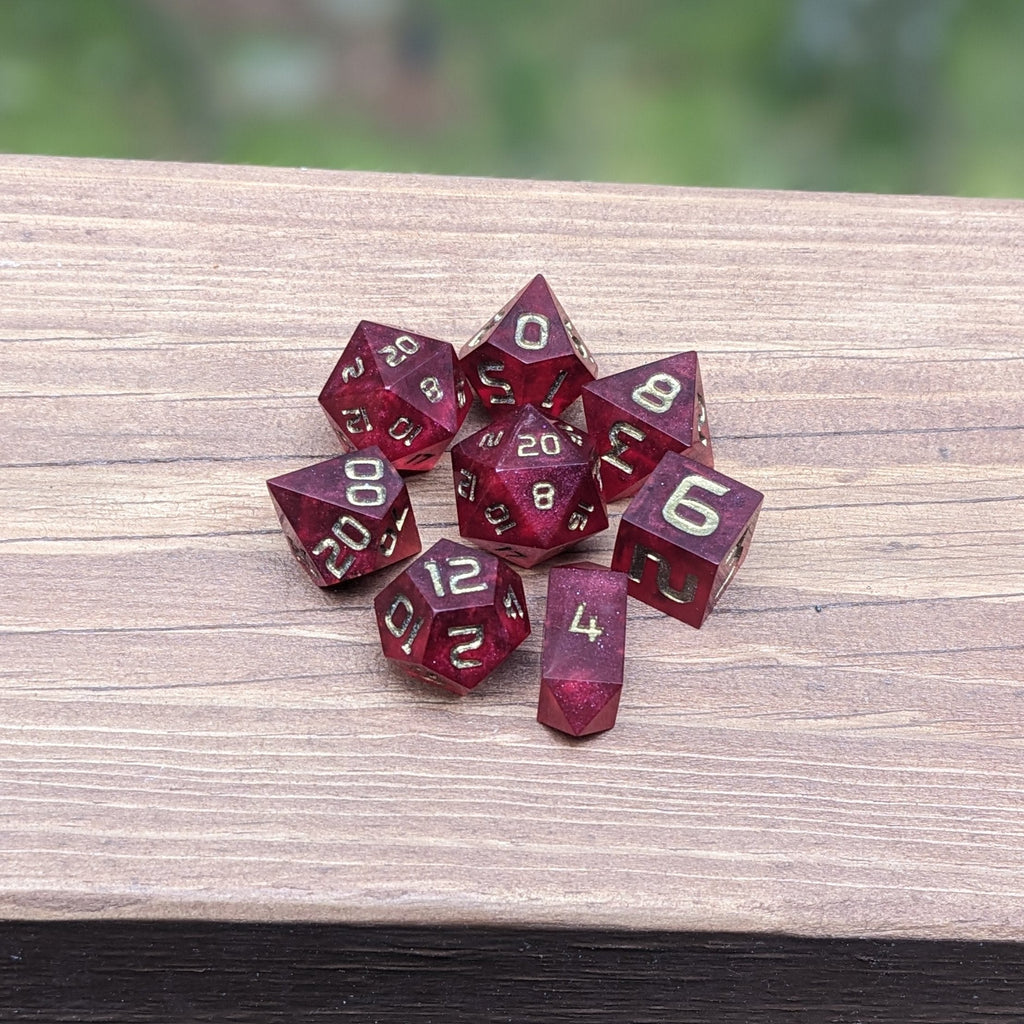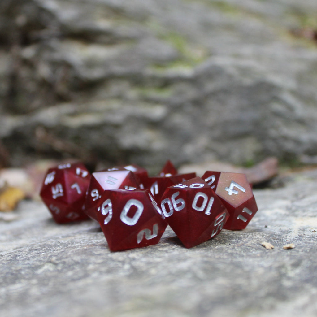 Crimson Fortune RPG Dice Set - Red Ruby 8pc Dice