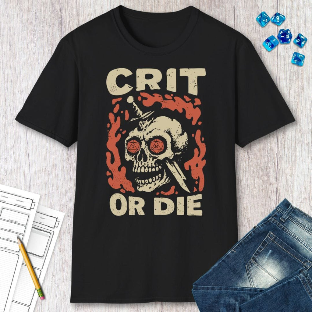 Be bold and show off your love for DnD with our Crit or Die shirt. Don't just roll with the punches—roll for that critical hit and dominate the game. This bold typography design makes a statement at every gaming table.