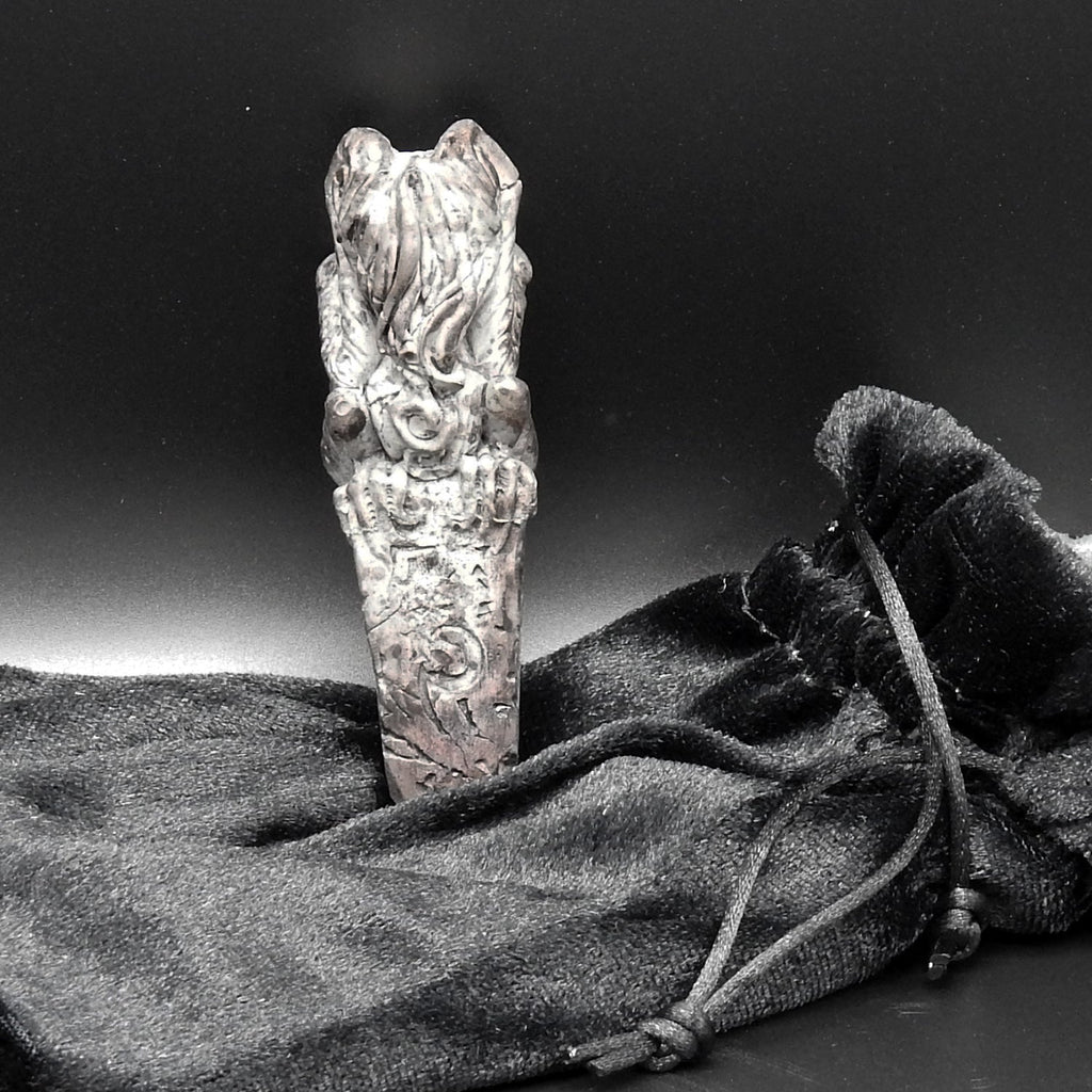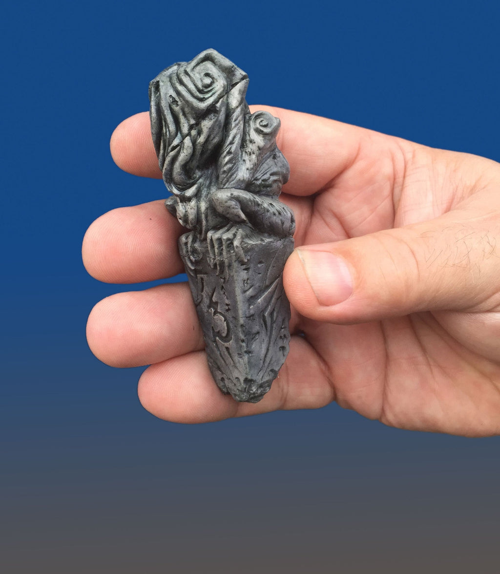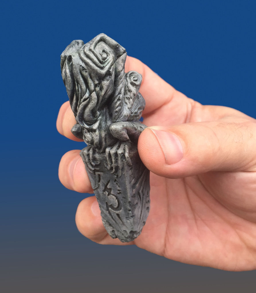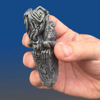 Sculptures of Lovecraft's celebrated Great Old One Cthulhu come in many shapes and sizes, but this is one of our favorites. Sculpted by Jason Hendricks, this Cthulhu fetish fits comfortably in the palm of your hand and is wrought with a tremendous level of detail, cryptic runes, and a hint of terrible antiquity. Worship it, run from it, or show it to the gang at your next cult ritual!