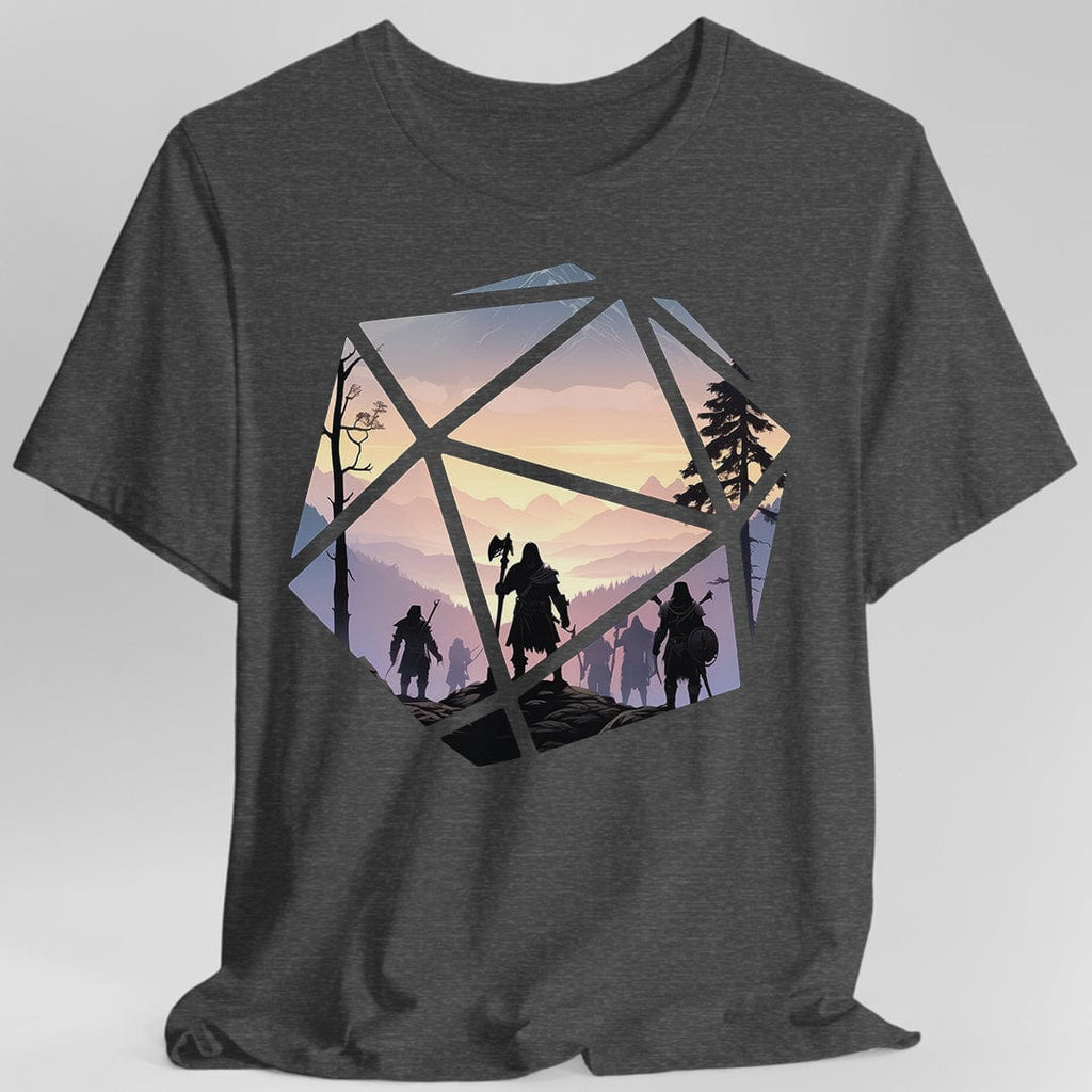 Unleash your inner adventurer with our DnD Shirt! Featuring a d20 design and a fantastical landscape, this tee is perfect for any Dungeons & Dragons fan. Gear up in style for your next quest!