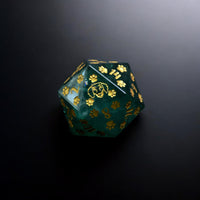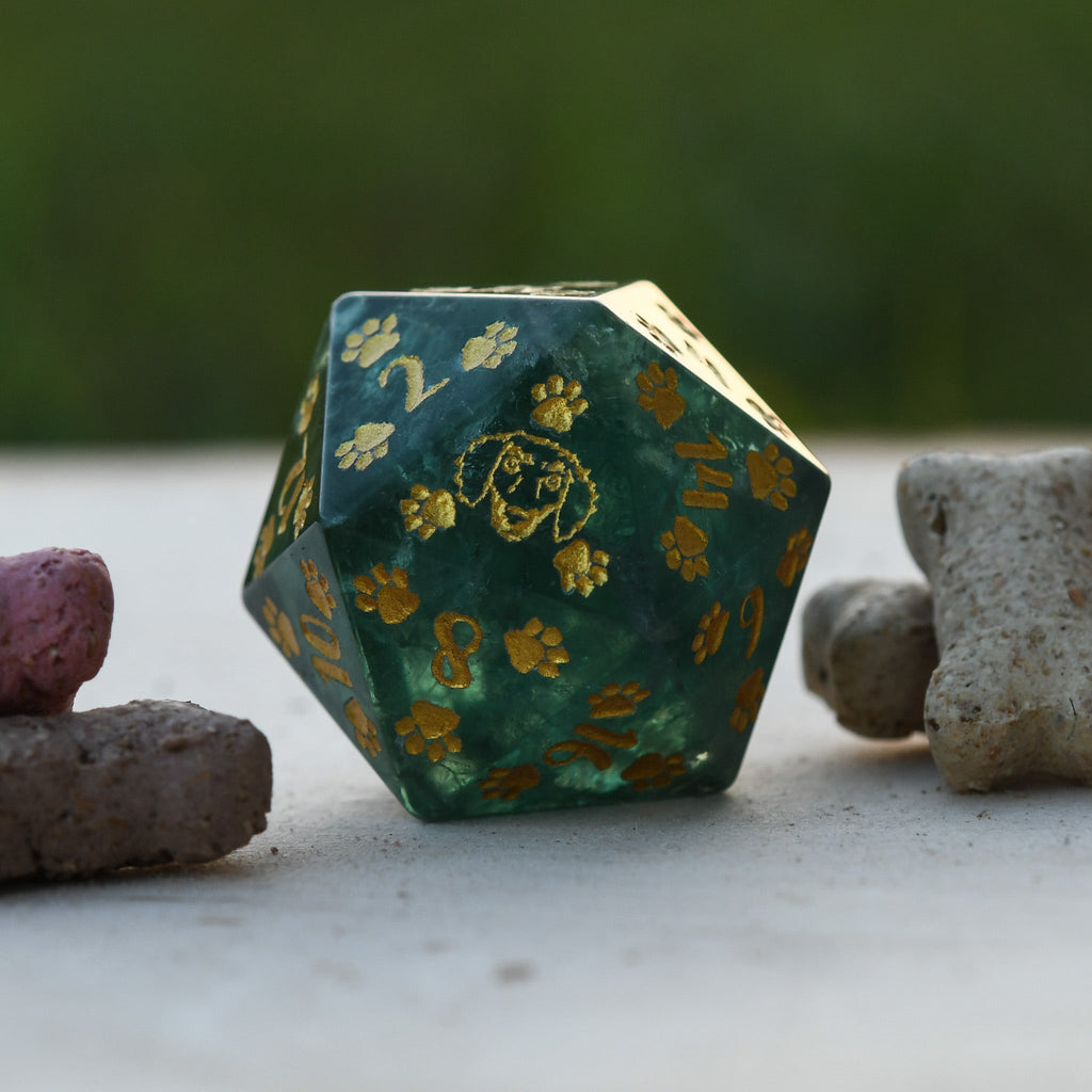Every D20 is hand carved from gemstone. Designs are then engraved into each side and hand painted. Gemstone dice are never guaranteed to have a perfectly balanced weight; however, each of our dice sets are always well weighted and well balanced.