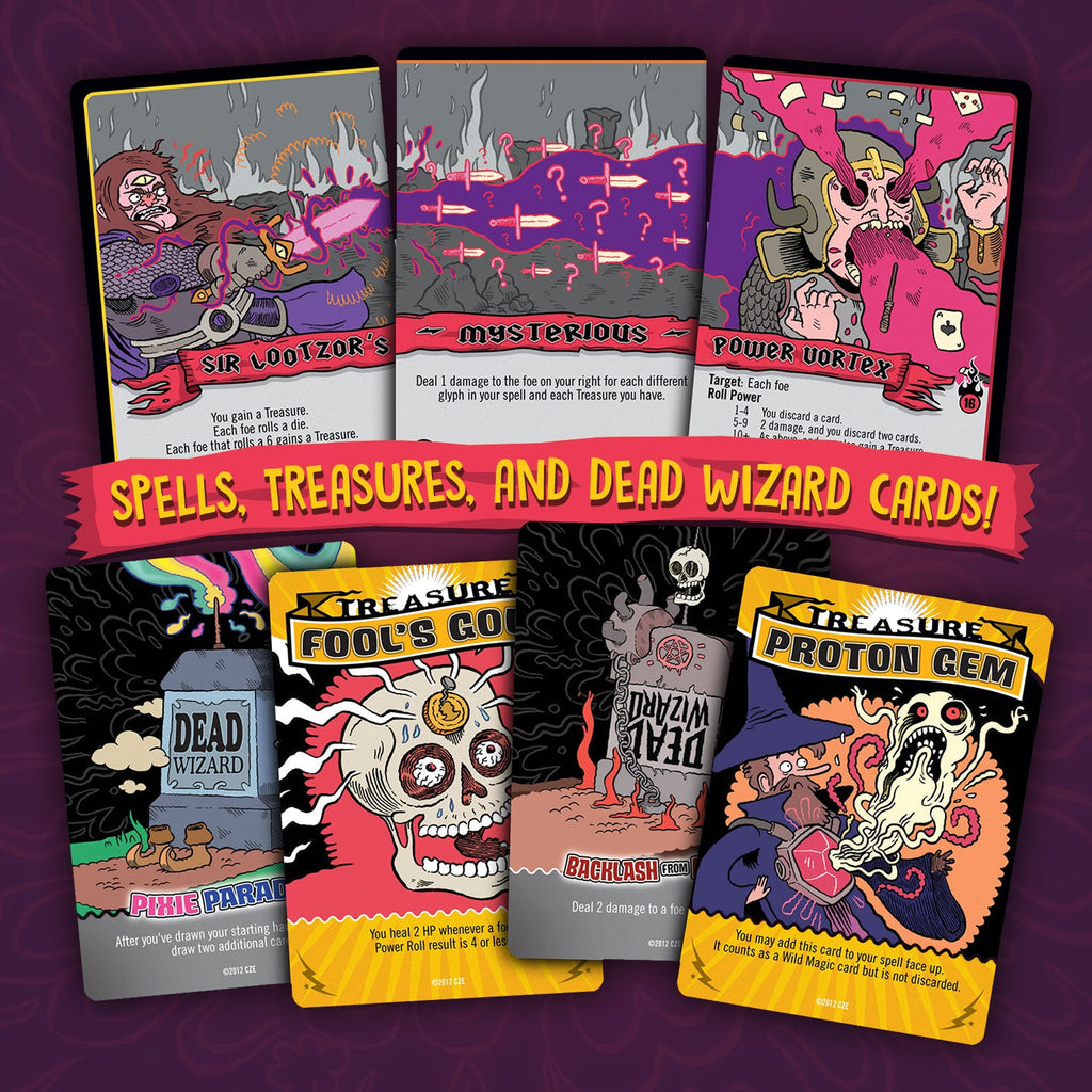 - Dead Wizard card innovation keeps players in the game, even when they suck and die before winning!
