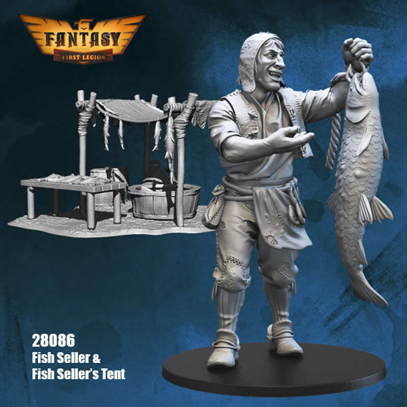 FLM28086 Fish Seller and Sellers Tent Figure Kit 28mm Heroic Scale Miniature Unpainted First Legion