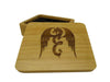 This wooden dice display and storage case features our Flying Dragon design that is engraved on the lid of each lid. Each wooden dice case has two pieces, a base designed to hold your dice, and an engraved lid that is magnetically attached to the base.