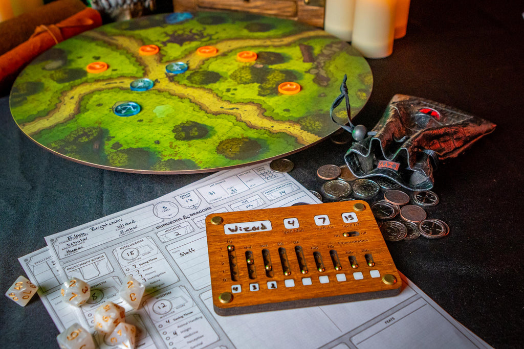 Designed for full casters in Dungeons & Dragons 5e and DnD 2024, this premium spell slot tracker puts every vital spellcasting stat at your fingertips. Built from beautiful red oak, durable acrylic, and secured with magnets, it's a rugged and elegant upgrade for your table.