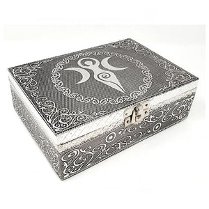 Goddess of Earth Carved Metal over Wood 5" x 7" x 2.25" High Box with latch. Velvet lined inside.
