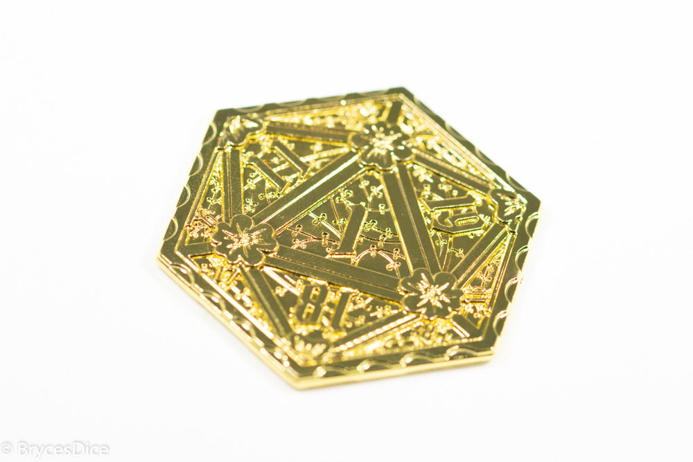 Gold d2 Coin Shaped like d20 Solid Gold Color