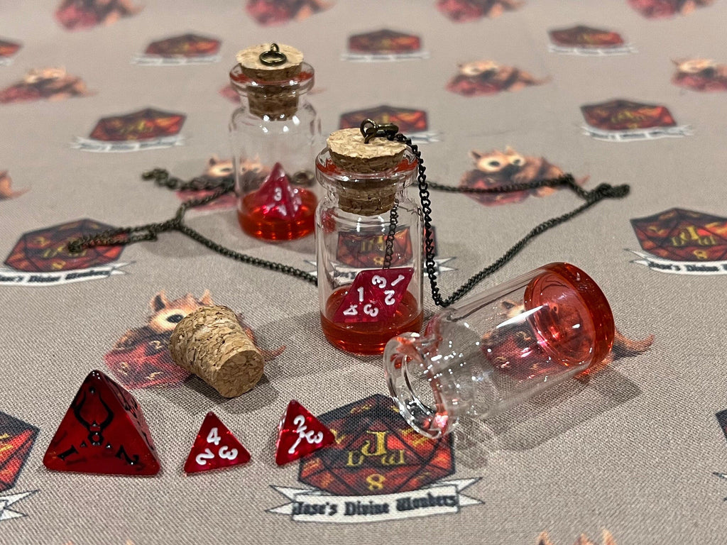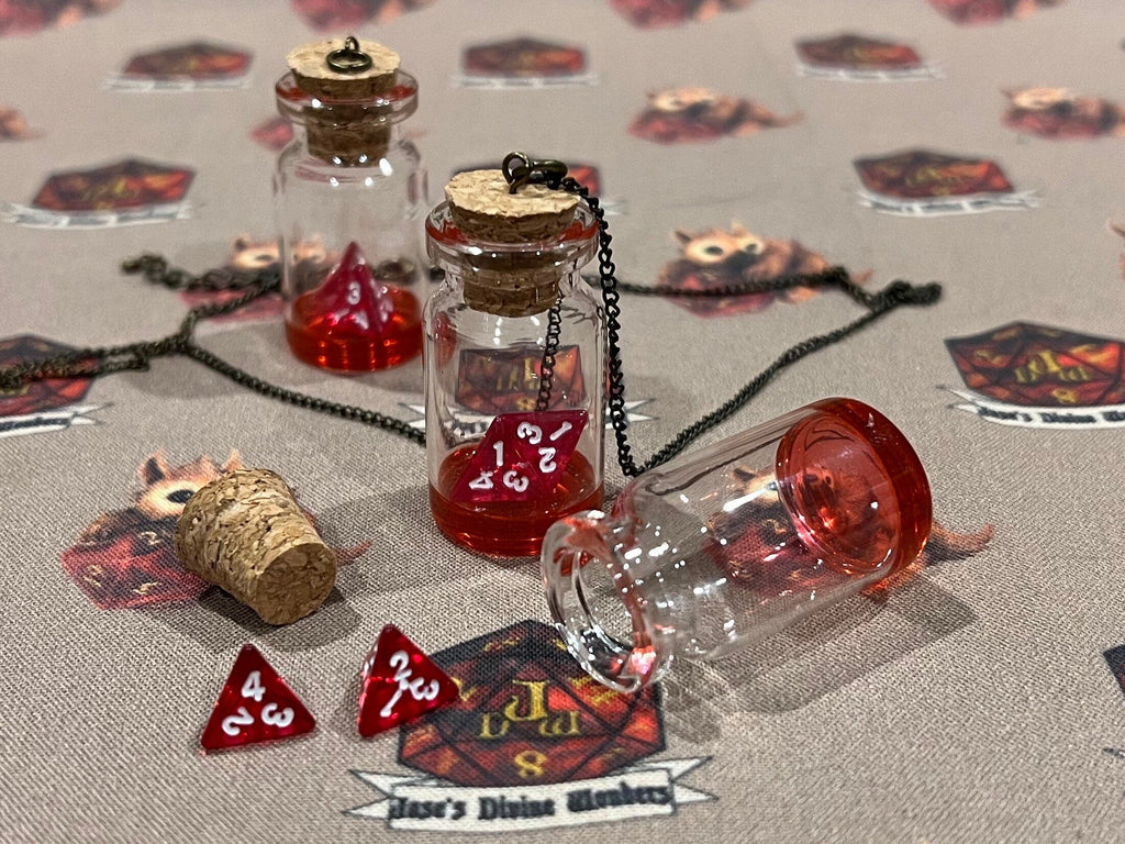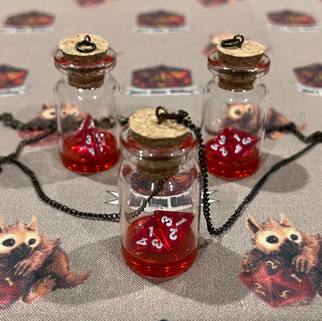 This small health potion is always with you. This health potion comes ready to use with dice and a chain.
