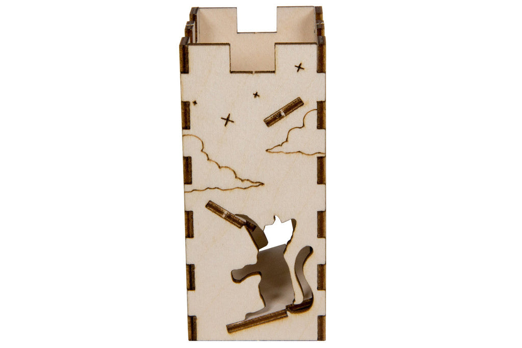 Add some feline magic to your Halloween nights with our themed mini dice tower, complete with custom engravings. Tower folds for easy travel and looks great in the middle of any gaming table. This tower ships as a kit that you easily snap together in minute, no glue required!