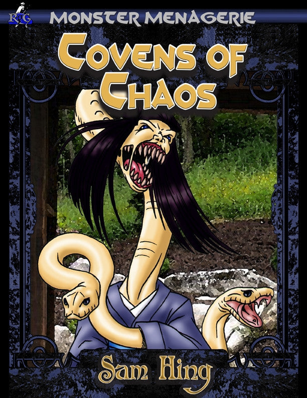Welcome to Covens of Chaos, the ninth in our line of monster books called Monster Menagerie. Each volume in this line presents a small set of monsters tied to a single theme, but spread over a range of CRs. For Covens of Chaos that theme is variants of hags, the classic crone-witch of fables and ancient mythology. As an added bonus, author Sam Hing has put together an awesome set of hag-related magic items, spells, and feats to round out your wicked wise women.