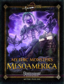 Mythic Monsters: Mesoamerica brings you an awesome array of marauding monsters and exotic encounters from the myths and legends of Central and South America and the Caribbean from the jungles of the Yucatan to the peaks of the Andes. These lethal legends of Latin America range from CR 1 to 30, including such Aztec-inspired creatures as eye-gouging ahuizotl and the apocalyptic harbinger from the stars, the tzitzimitl. From the Mayans we present the beautiful dreamflower xtabay and from Peru the deadly jungle stalker, the tunche. The legends of Chile, from the Araucana to the Chilote and more, bring us the accursed guecubu arisen from its grave with misfortune in its wake, as well as the volcanic cherufe and the shapechanging serpentine peuchen. Classic pulp and fantasy writers like Robert E. Howard have brought us monsters like the hate-fueled zuvembie and the saguaroi catcus-folk, inspired by the myths, legends, and landscapes of Mesoamerica. Creatures of genuine Caribbean legend are also well represented, including the blood-sucking chupacabra from Puerto Rico; the deadly sea monster of the Bahamas, the lusca; and even the very real (though now titanic) giant mantis shrimp! As if a dozen existing monsters were not enough, the brand-new Xipe Totec, a dread demigod flayer of skins and destroyer of destinies. Plus, for your players, the plumed servant prestige class serves the wise and benevolent rainbow-feathered serpents of the jungle pyramids, uniting arcane and divine magic with the subtle weavings of plumes and the watchful gaze of their eternal teachers. This includes both the core prestige class for any Pathfinder campaign, as well as mythic equivalents for making your rainbow servant a legend in her own right!