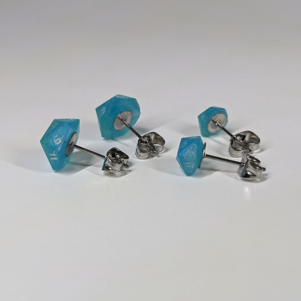 Ocean D20 Sterling Silver Stud Earrings - Blue Green Water Dice Jewelry