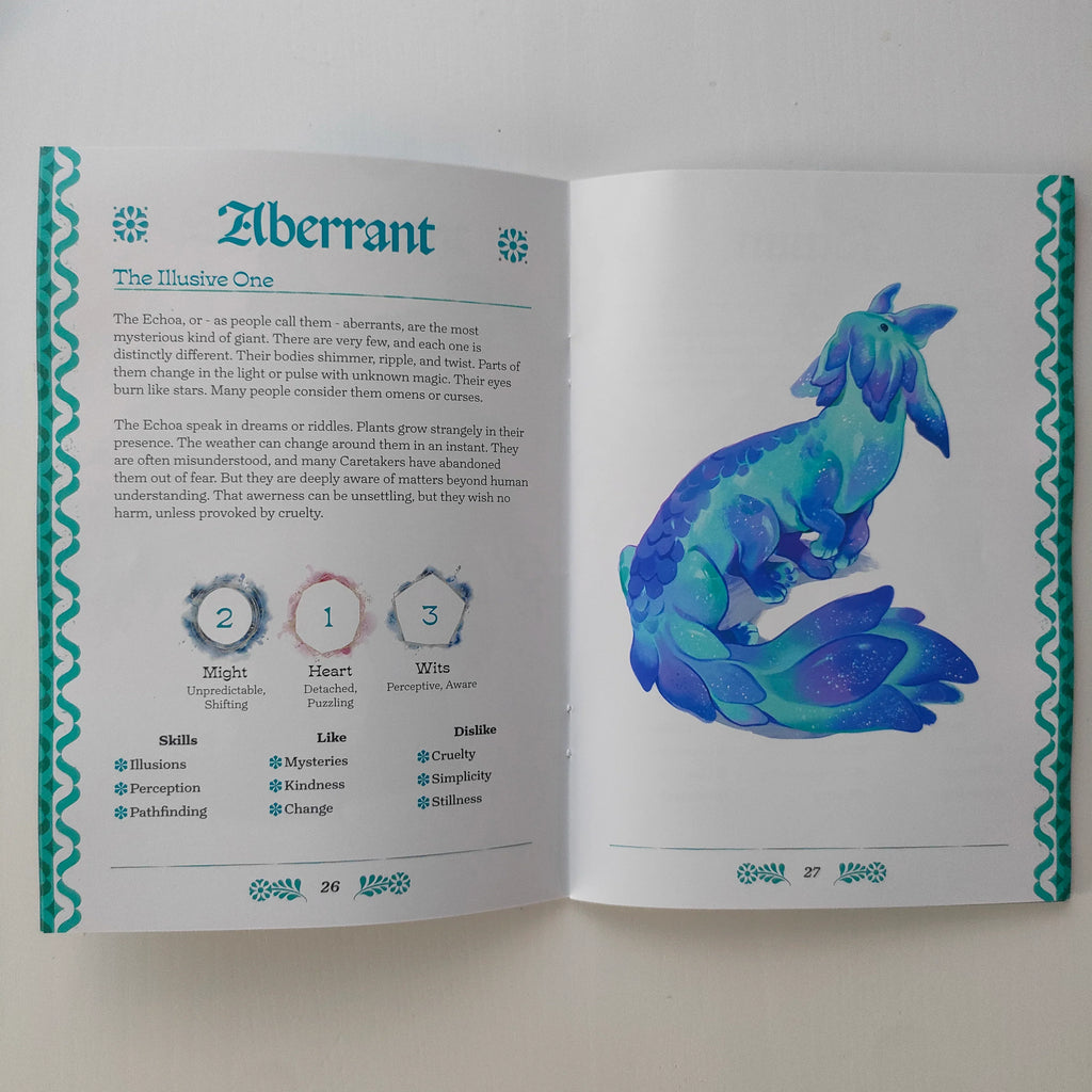 Odyssey of the Giant is a solo tabletop role-playing game about hope, silence, and the weight of companionship. You are the Caretaker, chosen to walk beside one of the last Giants and guide them across a land broken by the Cataclysm.