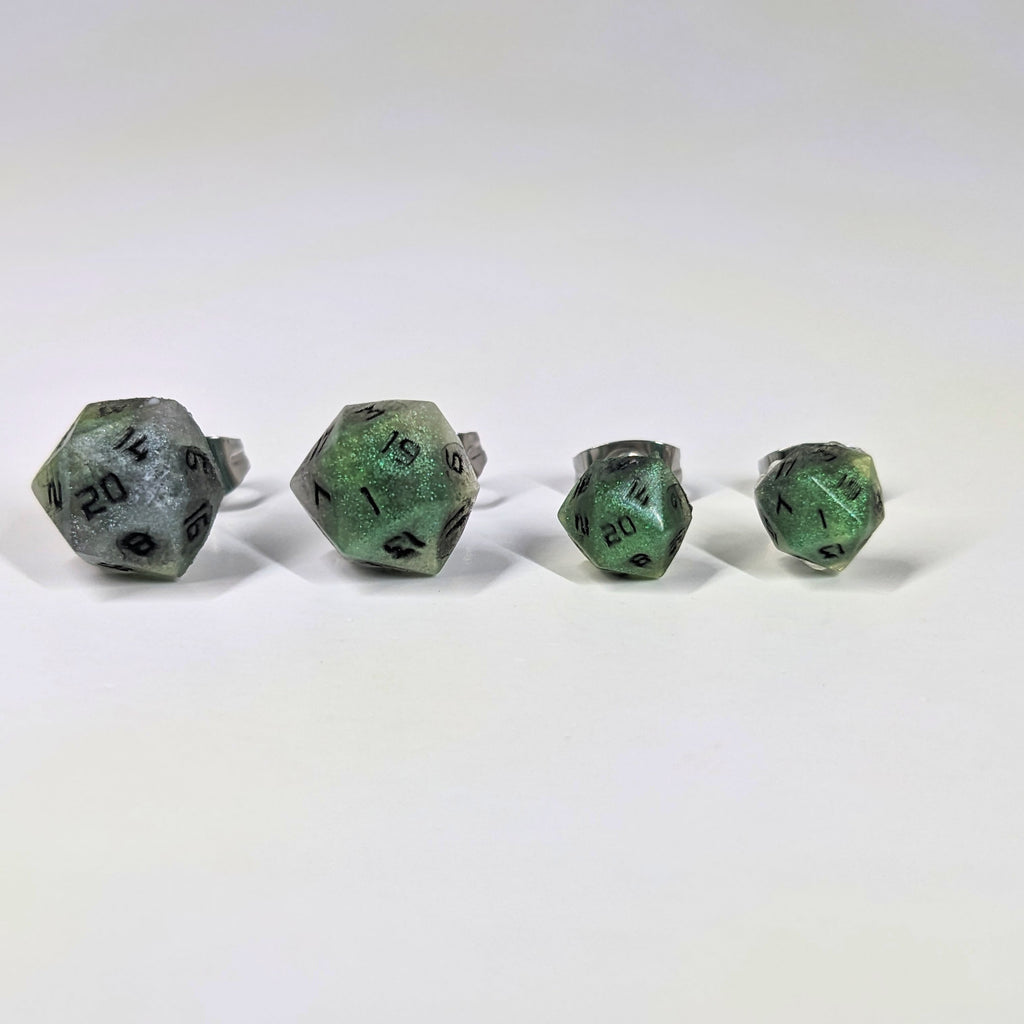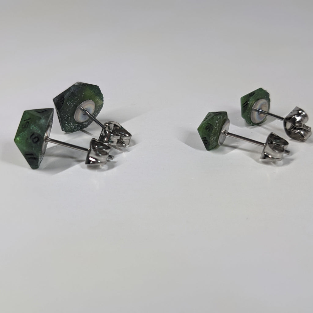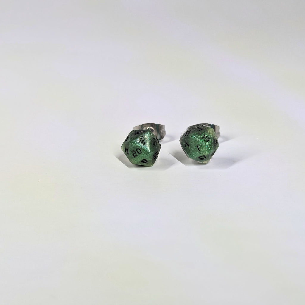 Poison D20 Stud Earrings - Venomous Green Silver Dice Jewelry