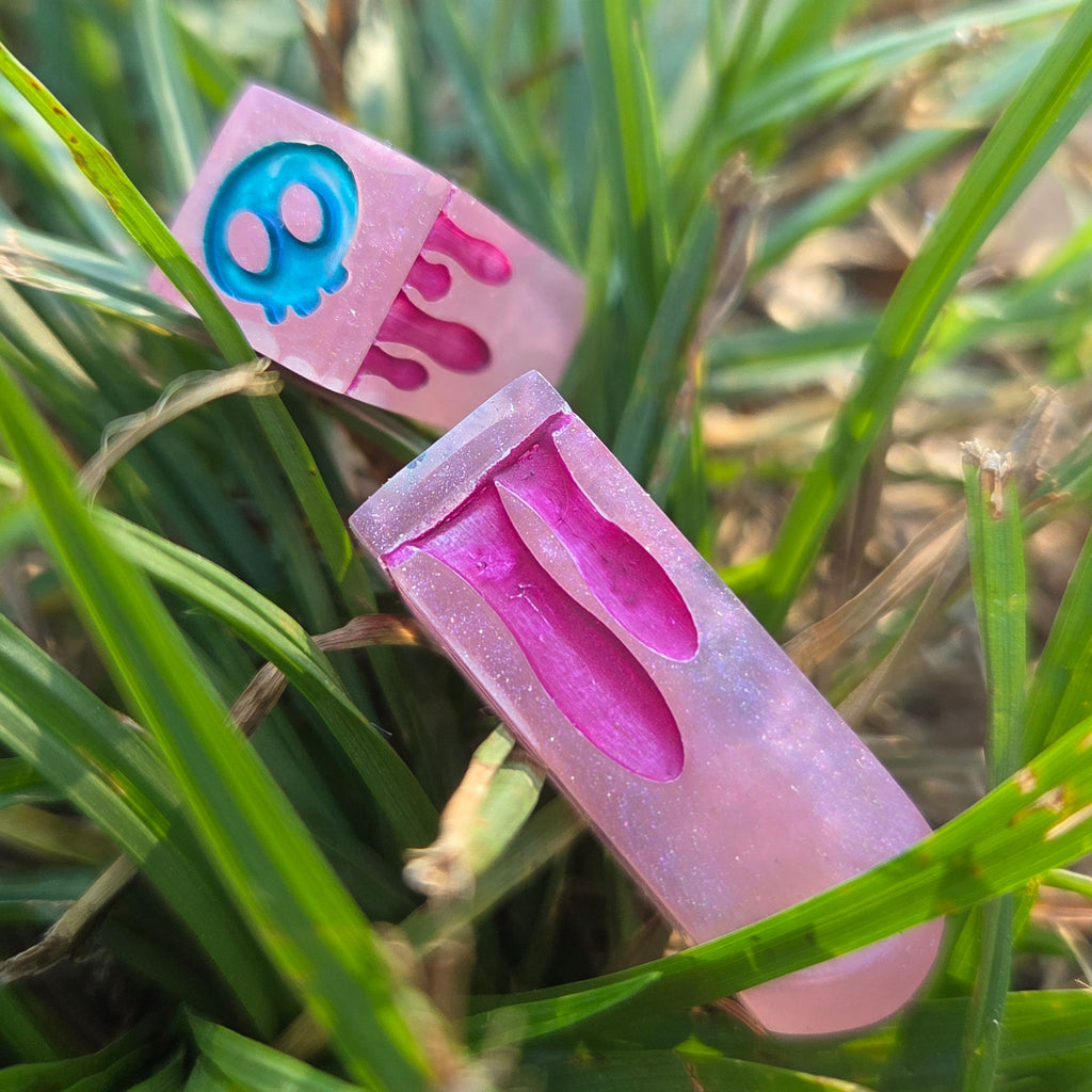 Poison vial D4. Each one is unique. These have a similar single color style to them. Count the drips on the side rolled to know what number you rolled!