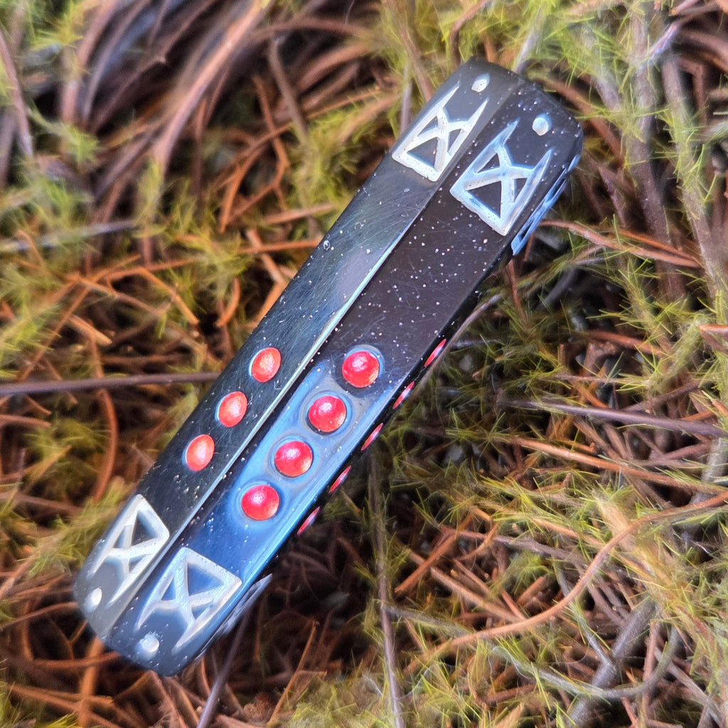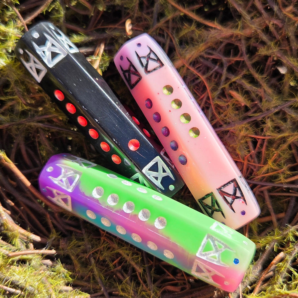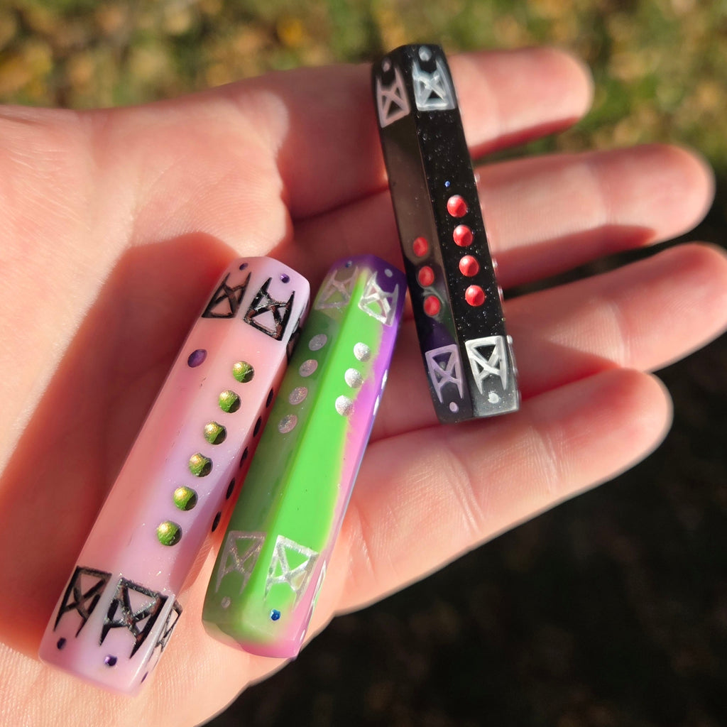 - Clear resin with paint flake accents