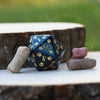 Every D20 is hand carved from gemstone. Designs are then engraved into each side and hand painted. Gemstone dice are never guaranteed to have a perfectly balanced weight; however, each of our dice sets are always well weighted and well balanced.