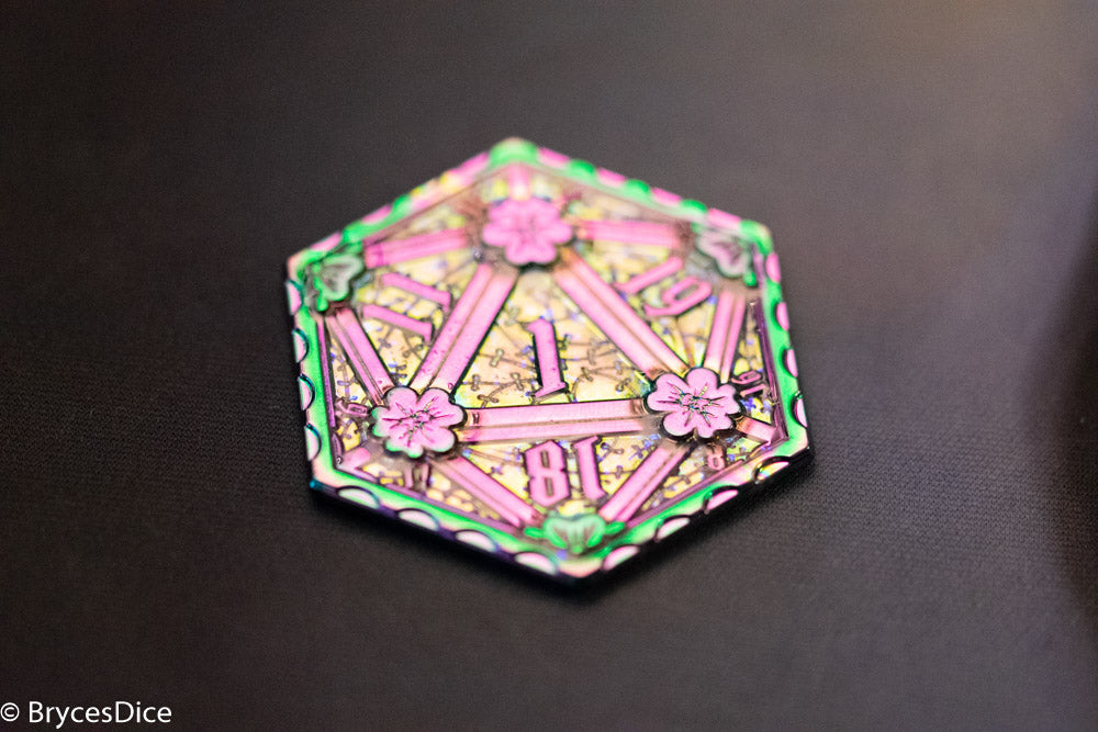 Rainbow d2 Coin Shaped like d20 w/ Purple Tint (V1)