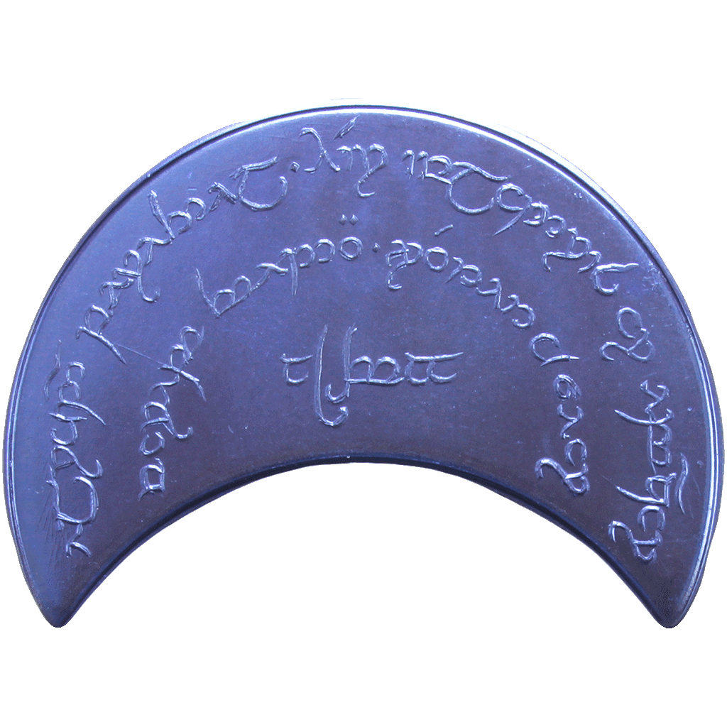 On the reverse, the Sindarin text inscribed in Tengwar reads, “Elrond Halfelven, Lord of Rivendell and of the Last Homely House East of the Sea, 2941”. TA 2941 is the year that Thorin Oakenshield™ and company meet Elrond at Rivendell before continuing on to The Lonely Mountain.