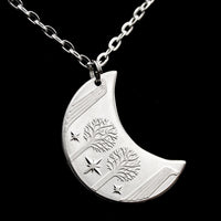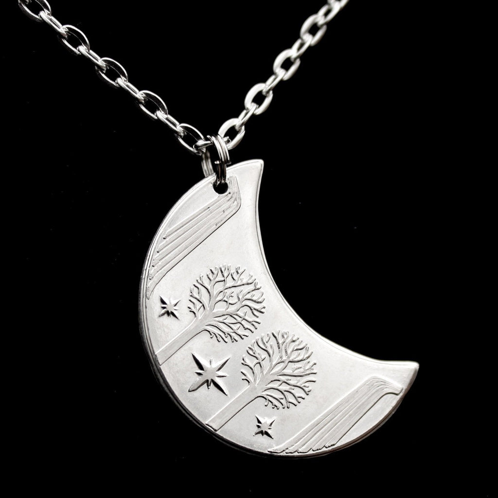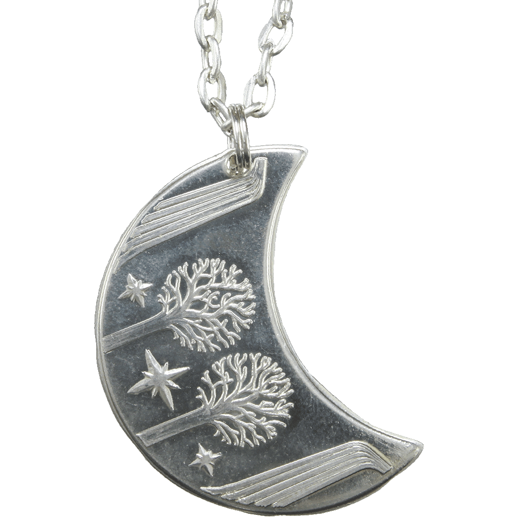 This unique crescent moon coin comes from Rivendell (Imladris in Sindarin), during the rule of Elrond™. It depicts the Rivendell valley, flanked by waterfalls, containing the ancient trees of silver and gold and the three Silmarils, represented as stars.