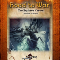 Road to War: The Equinox Crown is an adventure for 6th-level characters waging war against the fiendish powers dominating the fallen druid kingdom of the north. Holy crusaders march into enemy territory to recapture a location of vital strategic importance, and Road to War gives you a collection of encounters and scenarios to augment the scope and flavor of the existing adventures, replacing tedious random encounters and monotonous overland journeys with exciting and evocative events. These scenarios can be played independently or linked into a unique subplot to recover the legendary Equinox Crown, a relic of the ancient druidical circles that will come in very handy later in the campaign as they face down the Locust Lord and his swarming hosts. This item forms a key touchstone for many (though not all) of the encounters in Road to War, and it is designed to grow in power alongside the PCs as they rise to become mythic heroes in their own right, standing in the breach in a war the world dare not lose. Keep your faith and your sword ready, and set out on the Road to War!