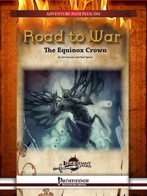 Written by the dynamic duo of Jim Groves and Neil Spicer, authors of two of the Righteous Crusade AP adventures, with art by Tim Kings-Lynne, this 26-page adventure also features a text-free player handout maps and a brand-new monster, the rock-solid durdalis, and a variety of harrowing challenges of mind, heart, and strength. Road to War: The Equinox Crown continues Legendary Games' tradition of bringing you outstanding content by the best authors in the business, combined with amazing art and production values and innovative layout design. We hope you enjoy using our products as much as we enjoy making them, and that you'll keep coming back again and again to Make Your Game Legendary!