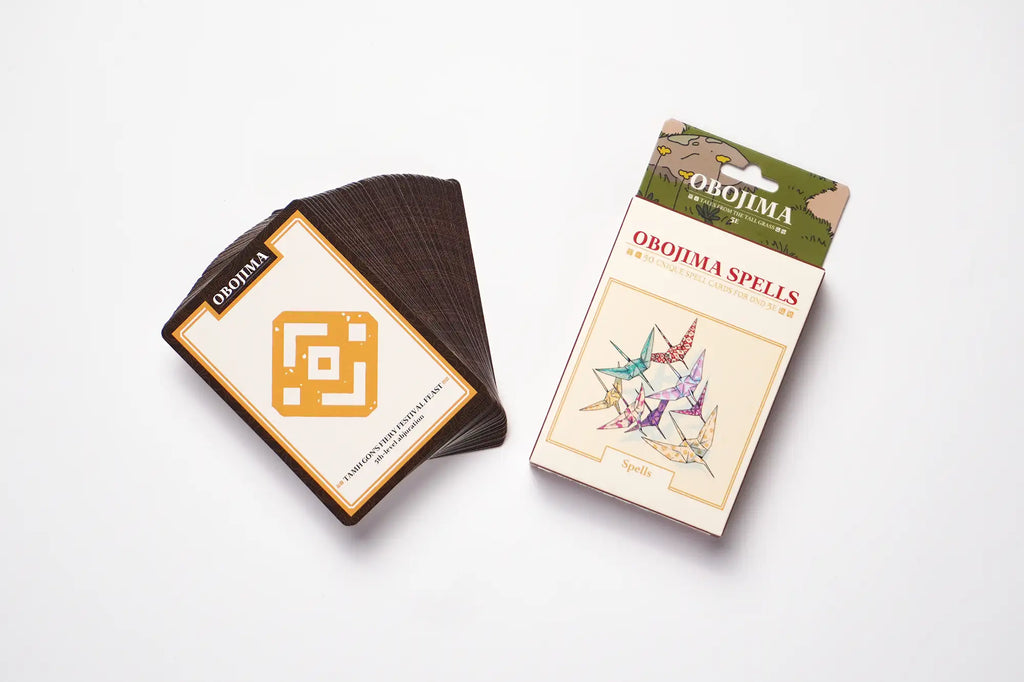 - 50 playing card-sized spell reference cards featuring all-new spells from Obojima