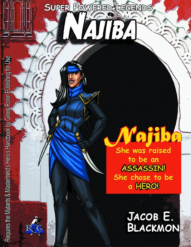 From an early age, Najiba (PL 9) was trained in the martial arts and to use daggers with deadly accuracy, as an agent of the Kaftar. After many years as their assassin, Najiba left, tired of the death she left in her wake. Now an enemy of the order, Najiba now travels the world – one step ahead of her persuers – and uses her training to try to better her world.
