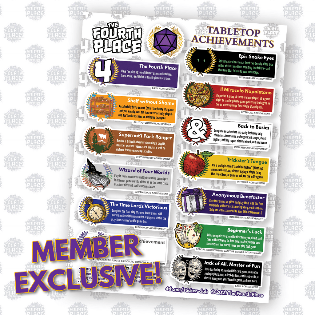 - Achievement-style stickers for tabletop gaming milestones