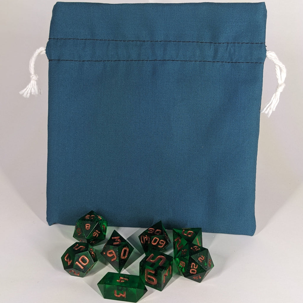 Teal Medium Dice Bag - Flannel Lined Drawstring Pouch