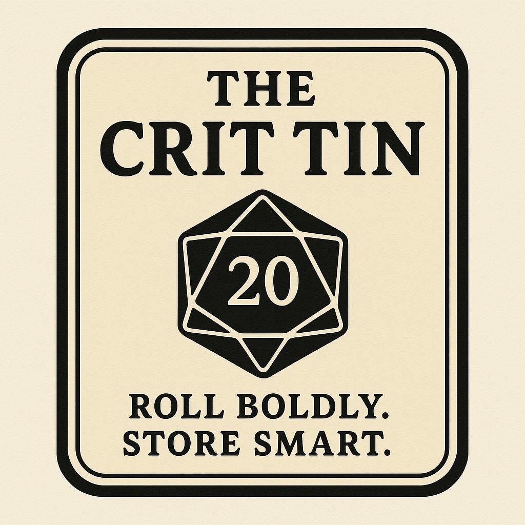Whether you’re a Dungeon Master on the move or a player who always brings their own luck, The Crit Tin is your ultimate travel companion.