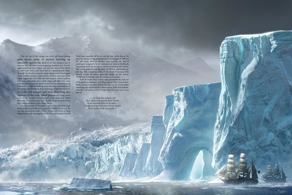 This new English edition published by Fria Ligan and Design Studio Press features gorgeous paintings from the HPL's tale of Antarctic horror. Baranger's approach to the tale is bold and cinematic - you feel as if you're looking at storyboards for a movie. The scale and intensity in the illustrations are breathtaking.
