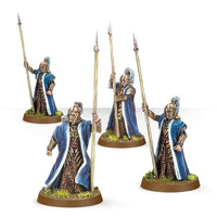 This highly detailed resin kit includes 4 pieces and a cast frame with 4 round bases (25 mm ) to build four guards of the Galadhrim court.