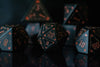 These dice sets are solid aluminum metal to assure better balanced rolls. Numbers and designs are carefully etched onto each side of the die. Every set comes with its own canvas dice bag for easy storage. Get into the spooky season with this creepy dice set!